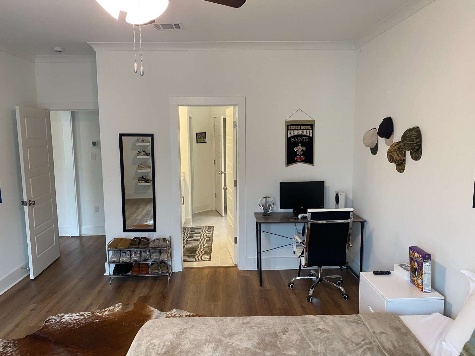 The split floor plan provides added privacy, with bedrooms positioned thoughtfully throughout the home. Bedroom 4 is tucked toward the rear, making it ideal for a guest room, office, or flex space.