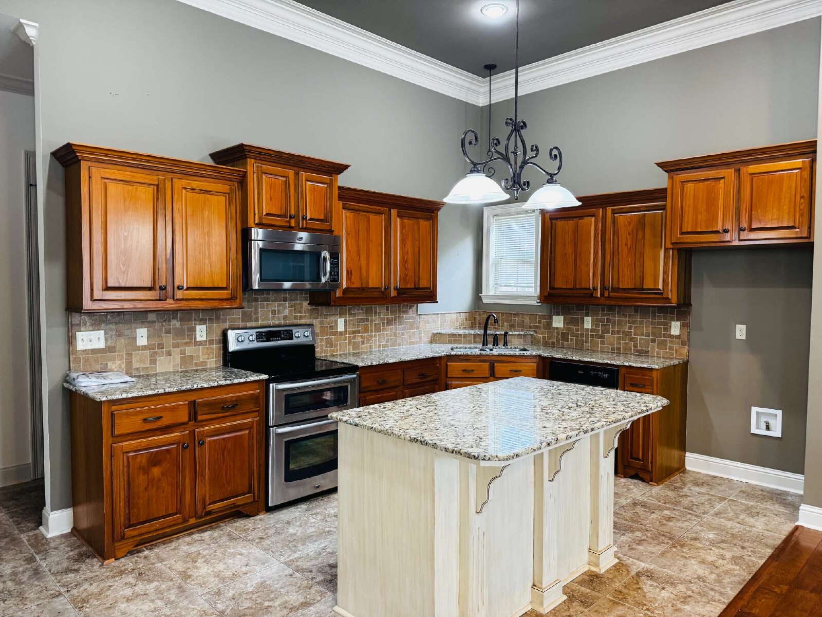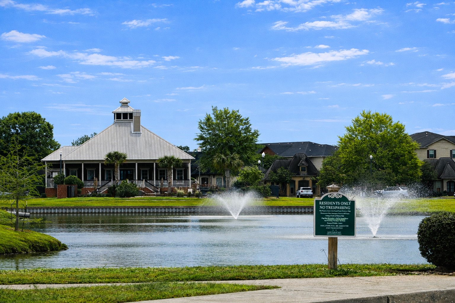 Grande Pointe corner house ideally located across from the community's main pond with an adjacent park behind. Three good size bedrooms, 2 full baths, wood floors, high ceilings, stainless appliances, pantry, laundary room, cozy sun room openg to a brick lined courtyard, attached 2 car garage. Renter to supply their own washer, dryer & refrigerator.